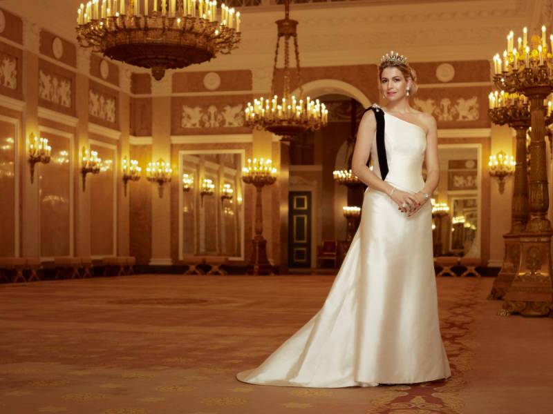 Ga naar www.erwinolaf.com. Zoek tussen de portraits de vier foto’s van koningin Maxima op.