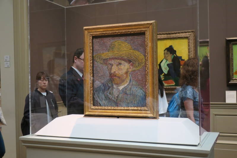 Er waren veel schilderijen van Vincent van Gogh. Waaronder dit zelfportret met strohoed. Dit schilderij is gemaakt in 1887 met olieverf op canvas.