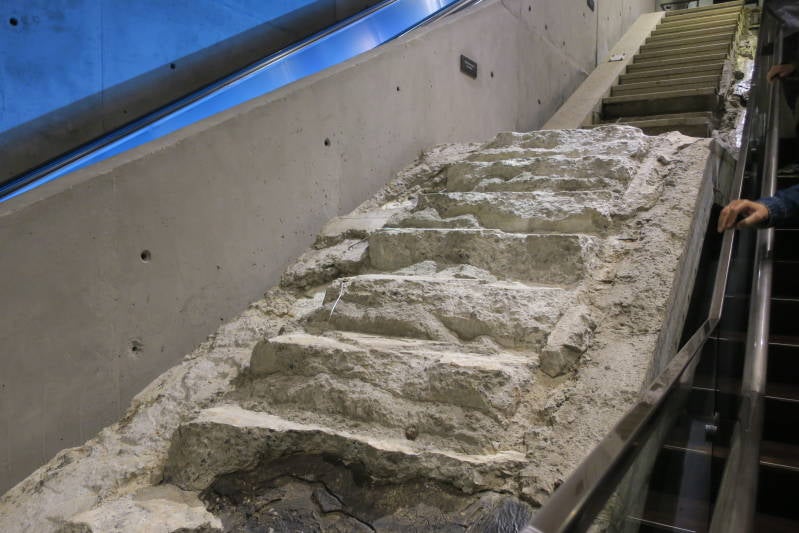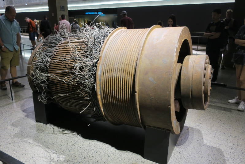 Daarna liepen we naar beneden waar in een grote ruimte brokstukken van het gebouw te vinden waren. We liepen langs een trap naar beneden. Dat was een trap die honderden mensen hadden gebruikt om de instortende toren te ontvluchten.